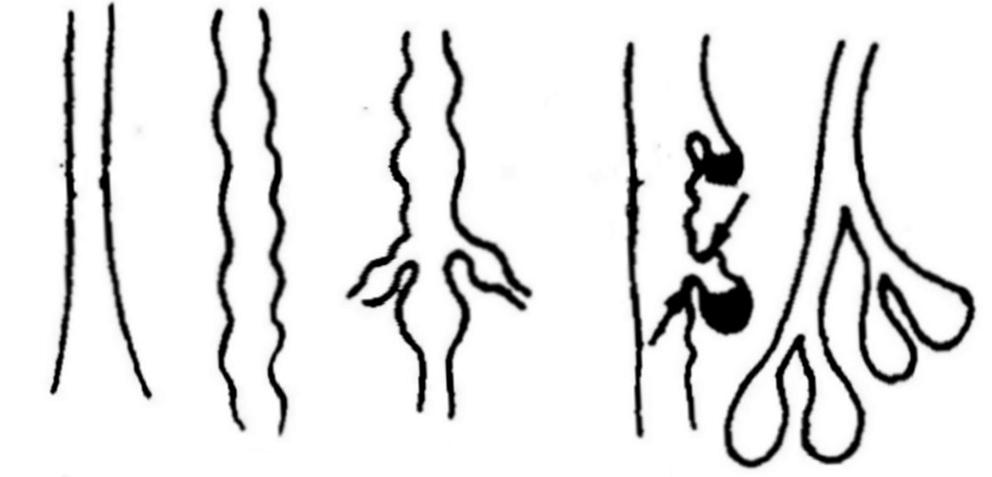 Diferite modificări ale bronşiilor - cilindrică, moniliformă, ampulară, "în deget de mănuşă"