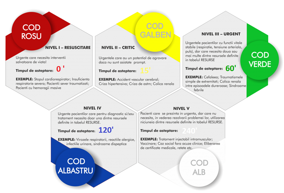 La prezentarea in urgenta vei intalni o asistenta sau un asistent care te va intreba despre motivul prezentarii si, in cazul in care este necesar, va determina anumiti parametrii functionali cum ar fi tensiunea arteriala, frecventa cardiaca si respiratorie, temperatura sau glicemia. In functie de acestea vei fi incadrat intr-o categorie de triaj, astfel incat sa beneficiezi de cea mai buna asistenta medicala de urgenta in cel mai scurt timp posibil.